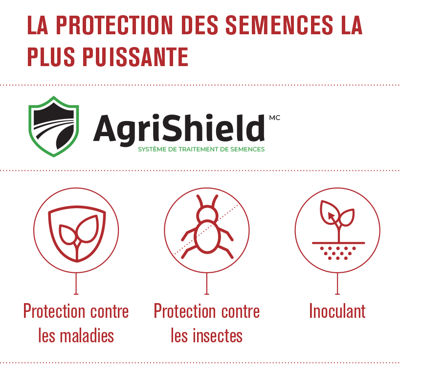Le système AgriShieldMC de traitement de semences de soya par Semences PRIDEMD est une solution simple. Il facilite le choix complexe de traitements de semences. Ce système simplifié permet aux producteurs de choisir les traitements les mieux adaptés à leurs champs.